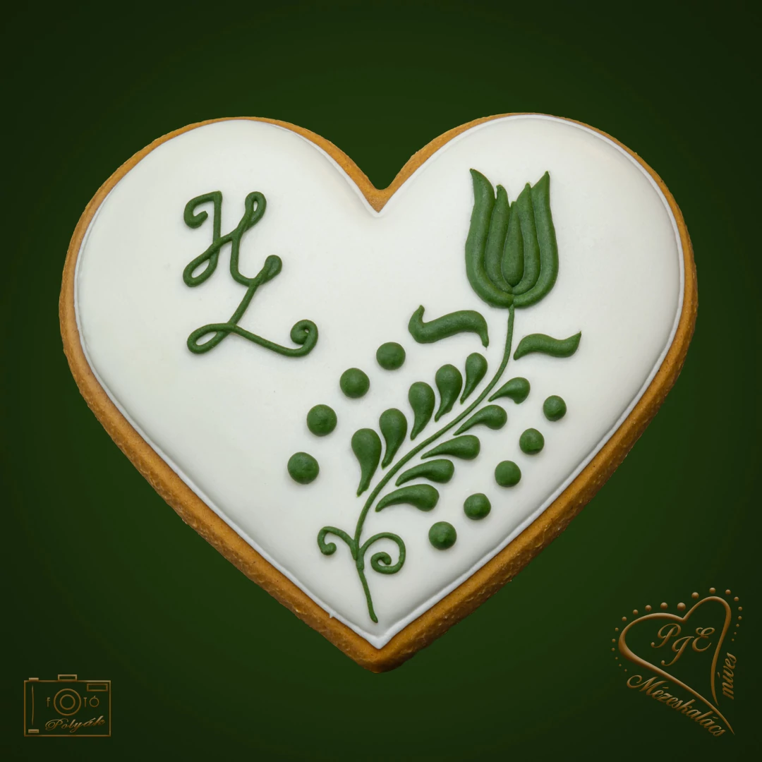 9 cm-es cukormázas szív jászsági magyar népi motívummal díszítve, mely minta kidomborodik az alapmázon. Aprólékos kézi munkával készítve.